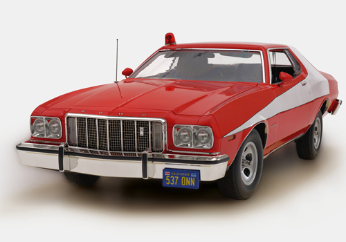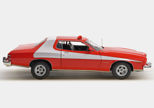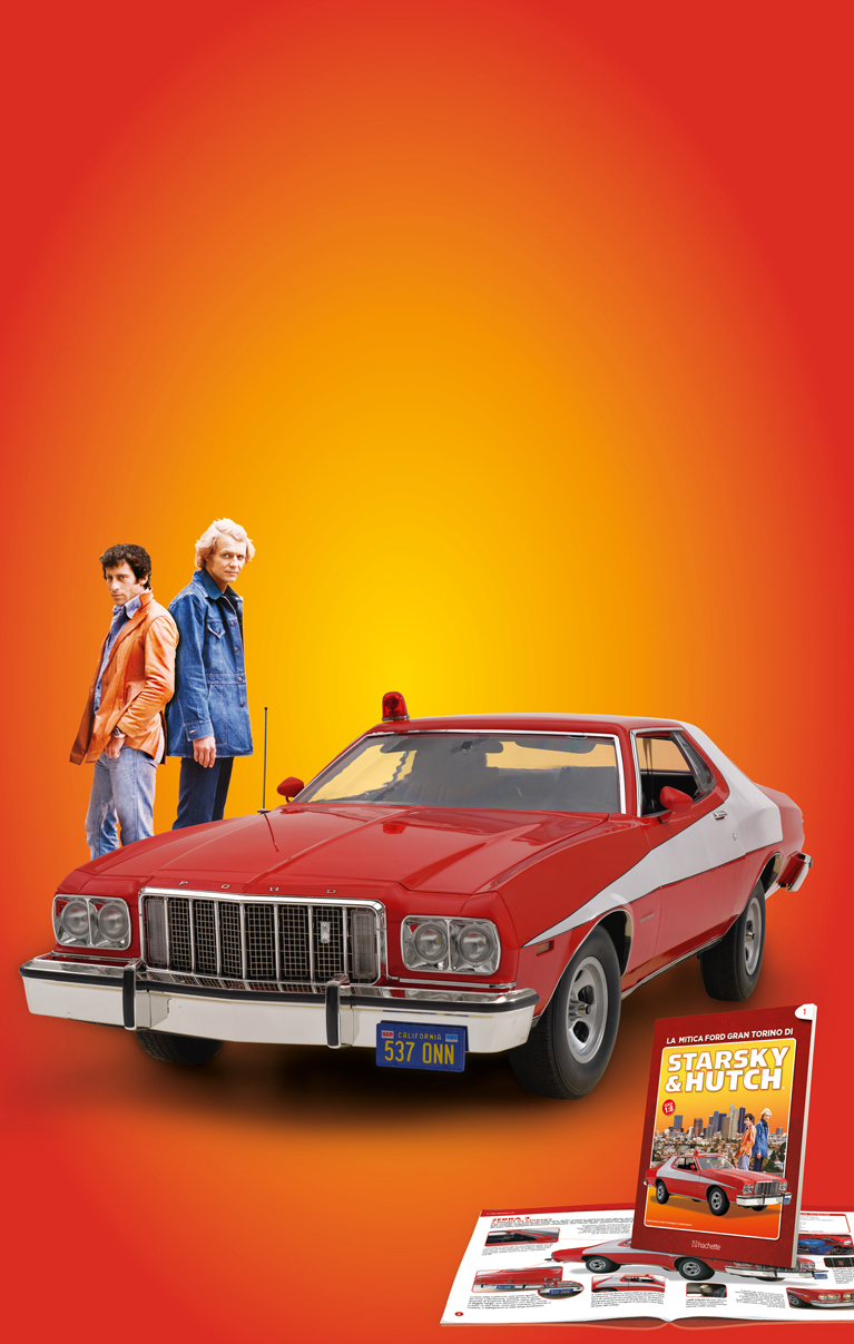La serie poliziesca degli anni Settanta Starsky & Hutch ebbe un successo straordinario all’epoca del lancio, imprimendosi nella memoria di un’intera generazione. La serie televisiva racconta le appassionanti vicende di una coppia di poliziotti, David Starsky e Kenneth Hutchinson, detto Hutch. La loro auto di servizio, in codice «ZEBRA 3», è una splendida Ford Gran Torino rossa, resa inconfondibile da una vistosa banda bianca.