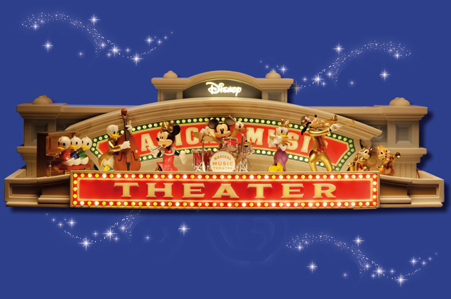 All’accensione, l’insegna sopra il teatro si illumina così come l’intero edificio.