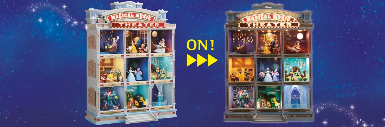 Posizionati sopra una pedana rotante, Belle e la Bestia ballano il valzer al ritmo del carillon.