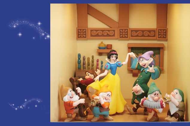 Nella piccola casa della foresta, mentre i sette amici suonano una divertente melodia, Biancaneve danza e canta allegramente.