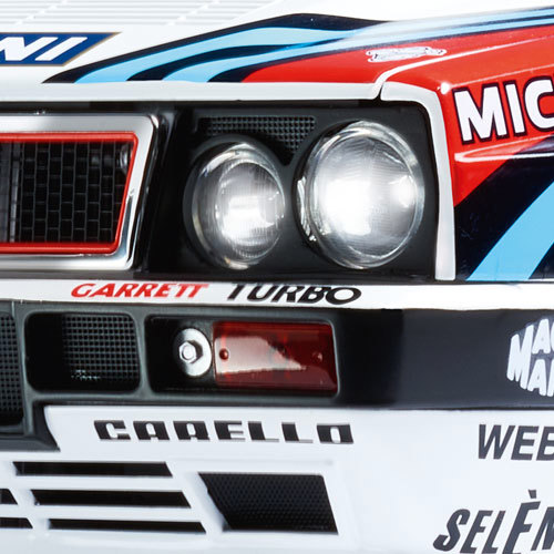 Carrozzeria in metallo Die Cast con decal, profili e appendici aerodinamiche identiche al modello originale. Motore e parti meccaniche totalmente ispezionabili, abitacolo perfettamente riprodotto: sedili ergonomici, roll-bar, cruscotto completo di strumentazioni di bordo del pilota e del navigatore.